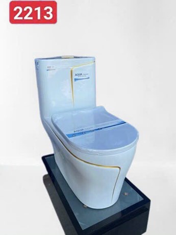 Bồn cầu liền khối AQUA Trắng viền vàng